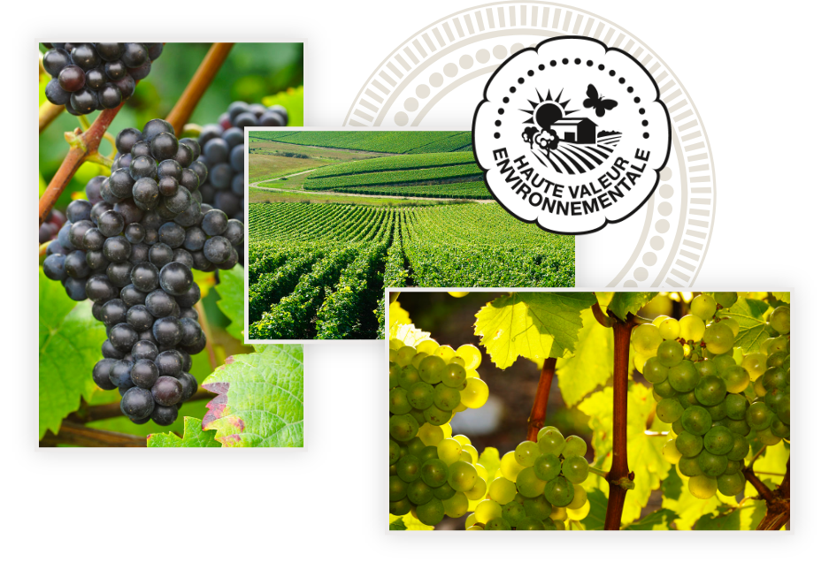 NOTRE VIGNOBLENotre vignoble est situé dans la partie méridionale de la Champagne, au cœur de la côte des Bar, dans la vallée de l'Ource dont les côteaux calcaires conviennent parfaitement à nos vignes. Cela confère des raisins aux arômes complexes qui font toute la richesse de nos cuvées. Nous cultivons deux cépages nobles champenois : le Pinot Noir apportant son corps et son fruité et le Chardonnay, sa finesse et sa légèreté. Leur complémentarité nous permet d'élaborer de grandes cuvées. Nous ne champagnisons que la seule récolte de notre vignoble de 25 hectares, planté sur les côteaux bien ensoleillés de Landreville. Depuis de nombreuses années nous sommes engagés dans une démarche écologique toujours plus attentive à la nature. Notre exploitation est certifiée Haute Valeur Environnementale de niveau 3, une reconnaissance officielle de la performance environnementale. Le niveau 3 est l'étape la plus élevée de cette démarche écologique. Elle atteste de notre respect des seuils de performance environnementale portant sur la biodiversité, la stratégie phytosanitaire, la gestion de la fertilisation et la gestion de la ressource en eau. En dégustant les Champagnes Royer Père et Fils vous vous engagez avec nous dans une démarche respectueuse de l'environnement.